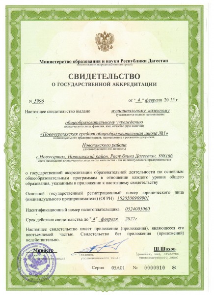 | Сокращенное наименование образовательной организации* | МКОУ "Новочуртахская СОШ № 1" |